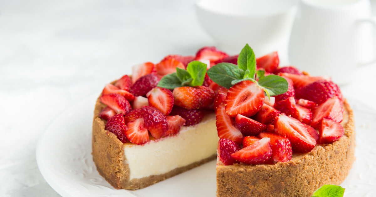 Préchauffez votre four à 240 °C. Après environ 10 minutes, lorsque la surface du cheesecake commence à dorer, ouvrez la porte pour faire baisser rapidement la température à 150 °C. Laissez cuire encore 50 à 60 minutes, jusqu’à ce qu’un couteau inséré au centre ressorte propre. Laissez refroidir avant de démouler. Saupoudrez de sucre glace, placez une dizaine de fraises fraîches sur le dessus, puis nappez avec le sirop avant de servir.