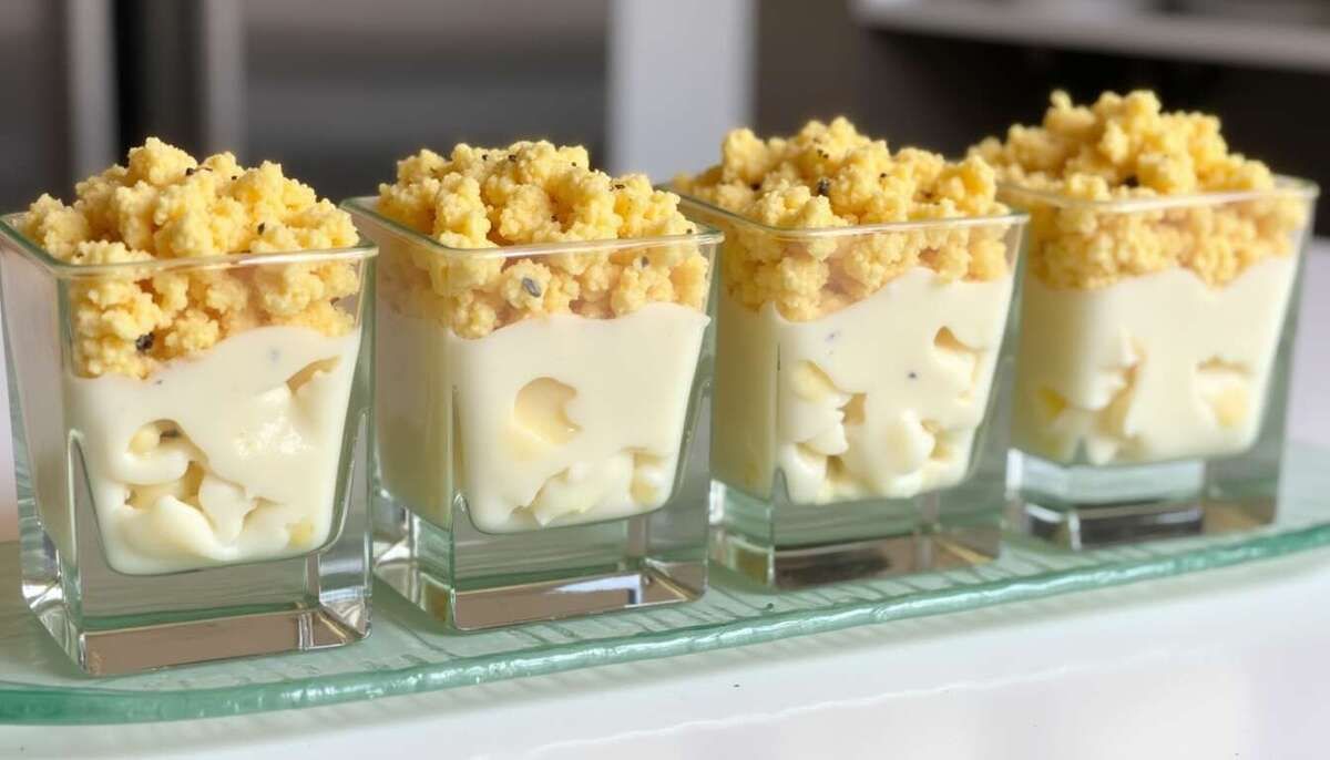 Les verrines d'œuf mimosa offrent une expérience gustative unique en revisitant cette entrée classique avec originalité. Faciles à préparer, elles sont idéales pour impressionner vos convives lors d'un repas convivial. Ces petites délicatesses pleines de saveurs ne manqueront pas de faire sensation à votre table. Mettons un peu de magie dans notre cuisine !