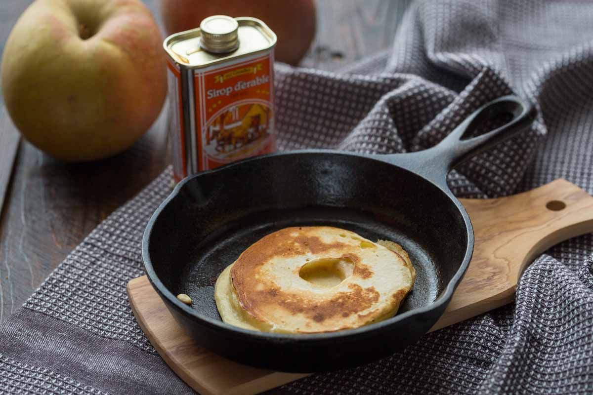 - Chauffez une poêle avec un peu d'huile. Trempez les rondelles de pomme dans la pâte et faites-les dorer quelques minutes de chaque côté.