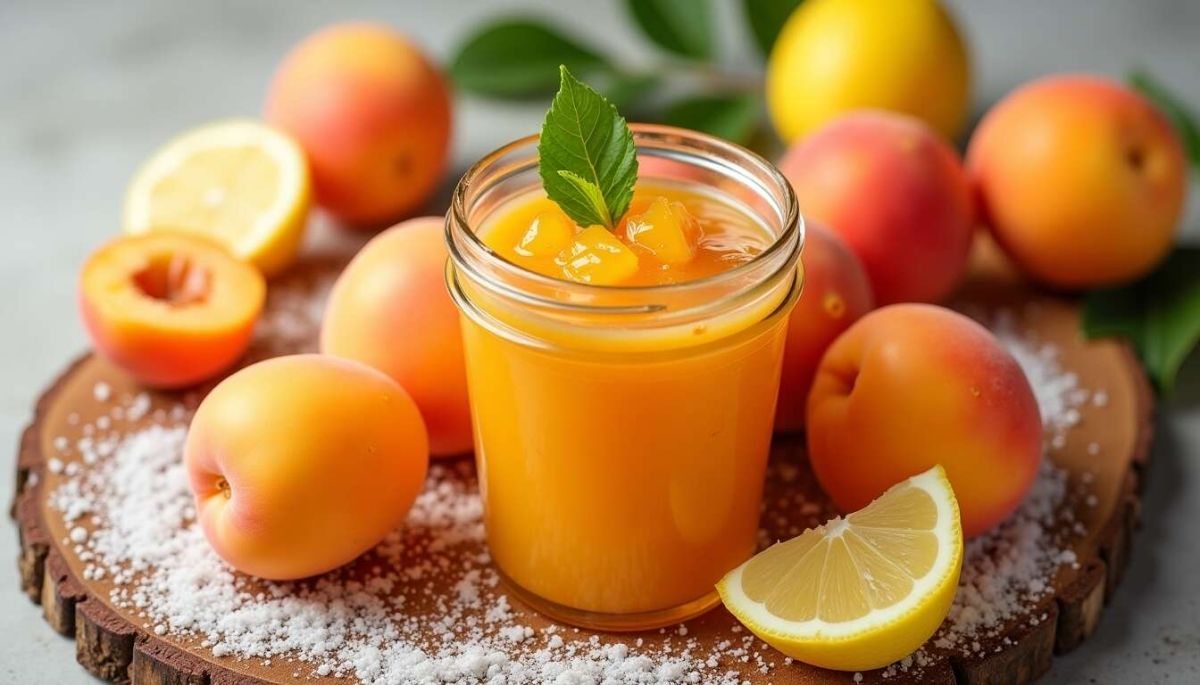 Complétez votre confiture d'abricots avec une boisson rafraîchissante comme un thé glacé aux fruits, parfait pour un brunch estival.