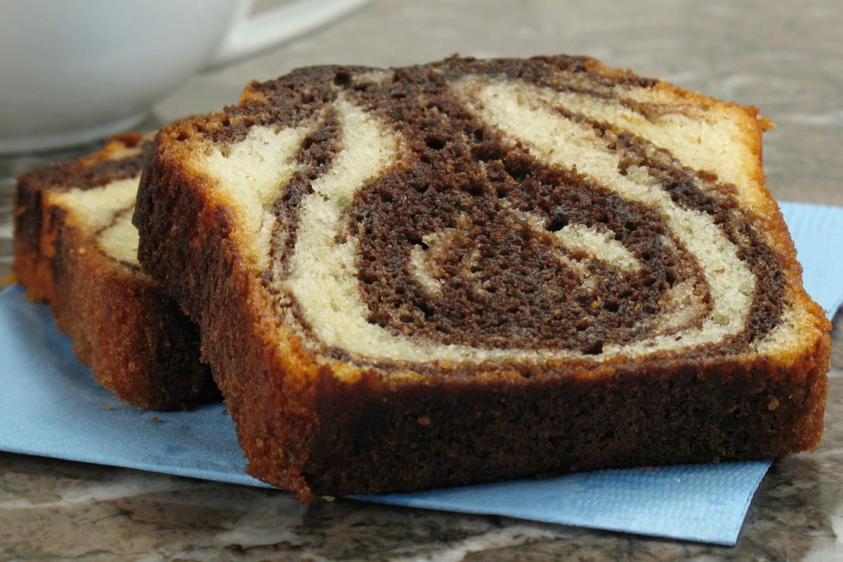 - Préchauffez votre four à 165 degrés. Beurrez et farinez un moule à cake, puis alternez les couches de pâte vanille et de pâte chocolat dans le moule. Mélangez délicatement à l'aide d'une fourchette pour obtenir l'effet marbré. Enfournez pour une heure. Vérifiez la cuisson à l'aide d'un couteau et démoulez sur une grille.