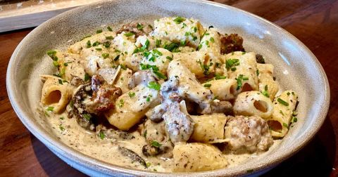 Mélangez dans un bol les œufs, la crème, la moutarde, du sel, du poivre et des herbes de Provence.
