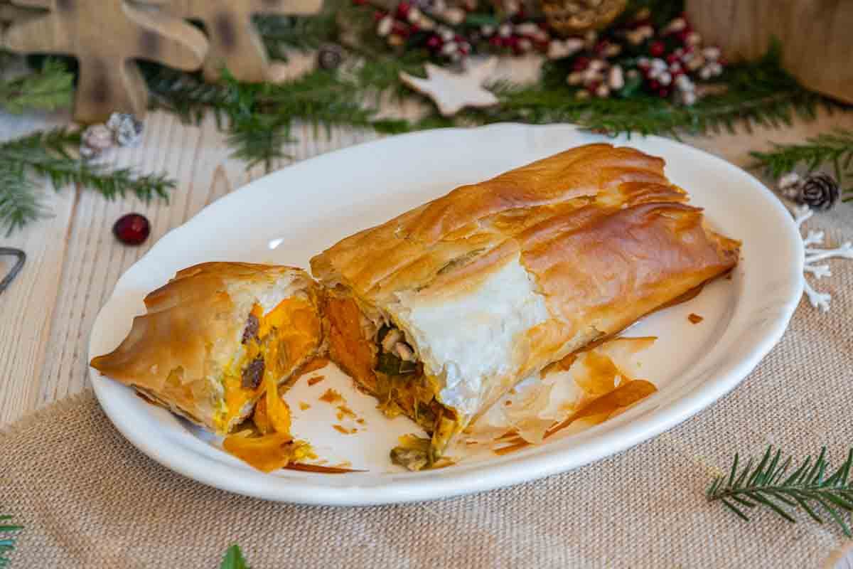 Chaque année, pour mes repas de Noël, j'aime proposer un plat végétarien qui ravit tous mes invités. Cette fois-ci, je vous présente un strudel salé fait de légumes et de fruits secs, qui mélange la douceur du potimarron à la texture croquante des fruits. Découvrez une recette à la pâte filo croustillante, parfaite pour un repas chaleureux.