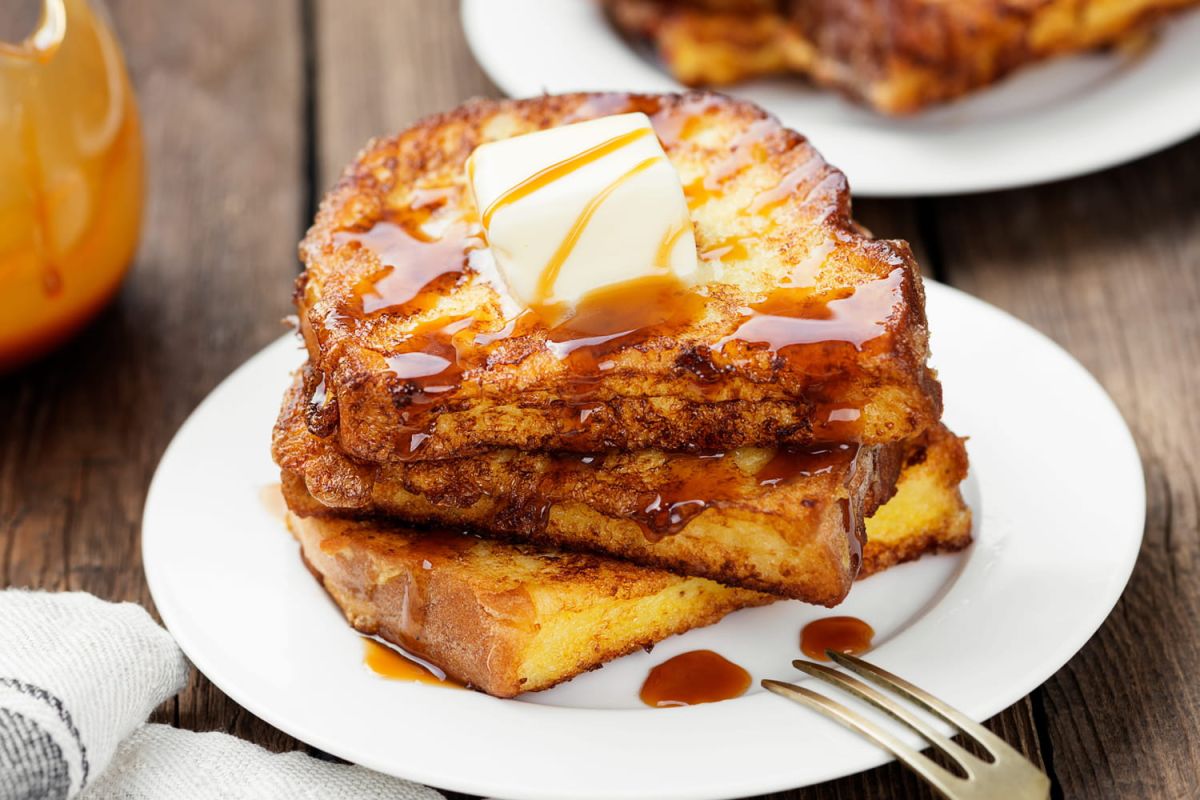 Nota bene : Pour imbiber 8 tranches de pain, mélangez 3 gros œufs avec 235 ml de lait, 2 cuillères à soupe de sucre roux, une pincée de cannelle, 1 cuillère à soupe de vanille liquide, et 2 cuillères à soupe de beurre salé fondu pour un résultat encore plus moelleux.